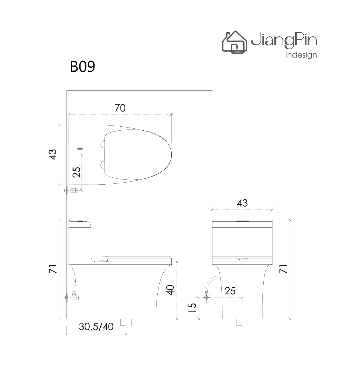 產品型號:B09A 產品名稱:單體馬桶 尺 寸:D70 x W43 x H71 cm 規 格:美規 管 距:30.5 cm 水 量:3L/5L 沖水方式:噴射虹吸 -附PP緩降馬桶蓋 NT$ 11,000